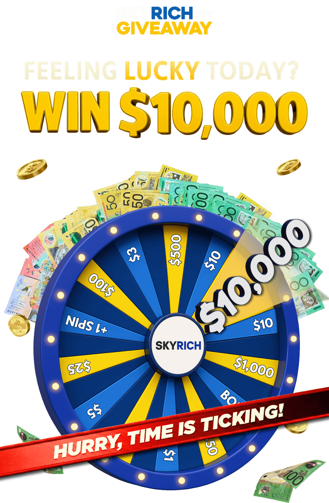 Each package includes exclusive access to Skyrich Club and Free Spins to enter our giveaways for a chance to win real cash and prizes.